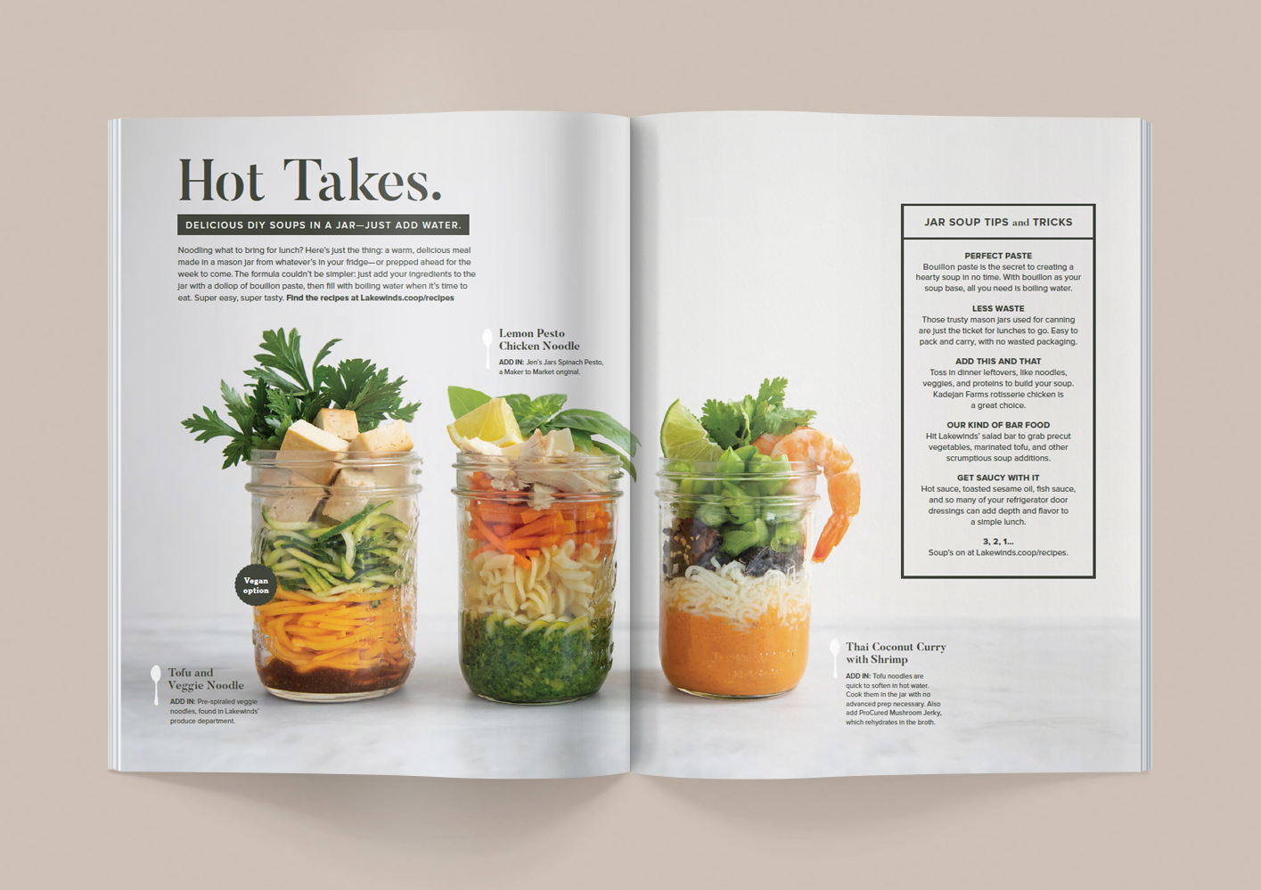 Lakewinds Food Co-op is dedicated to natural products, supporting local makers and fostering strong relationships with farmers. We redesigned their Refresh quarterly newsletter with a content strategy and publication design that shared their mission. We art directed seasonal shoots to keep their social content fresh and relevant.